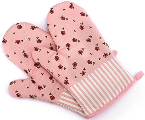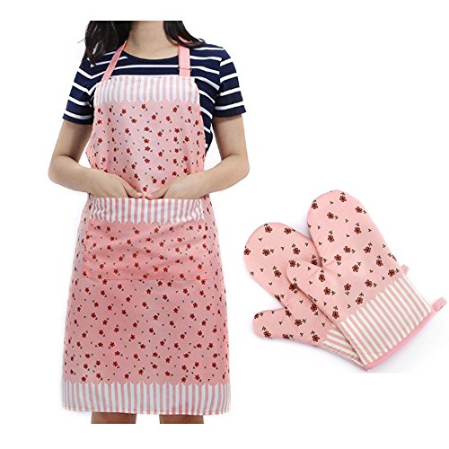 FashionBoutique and Practical Apron (suitable for kitchen,cafe,working shop) + Set of 2 Lovely Heat Resistant Cotton Oven Mitts (Adult Size, Candy Pink)