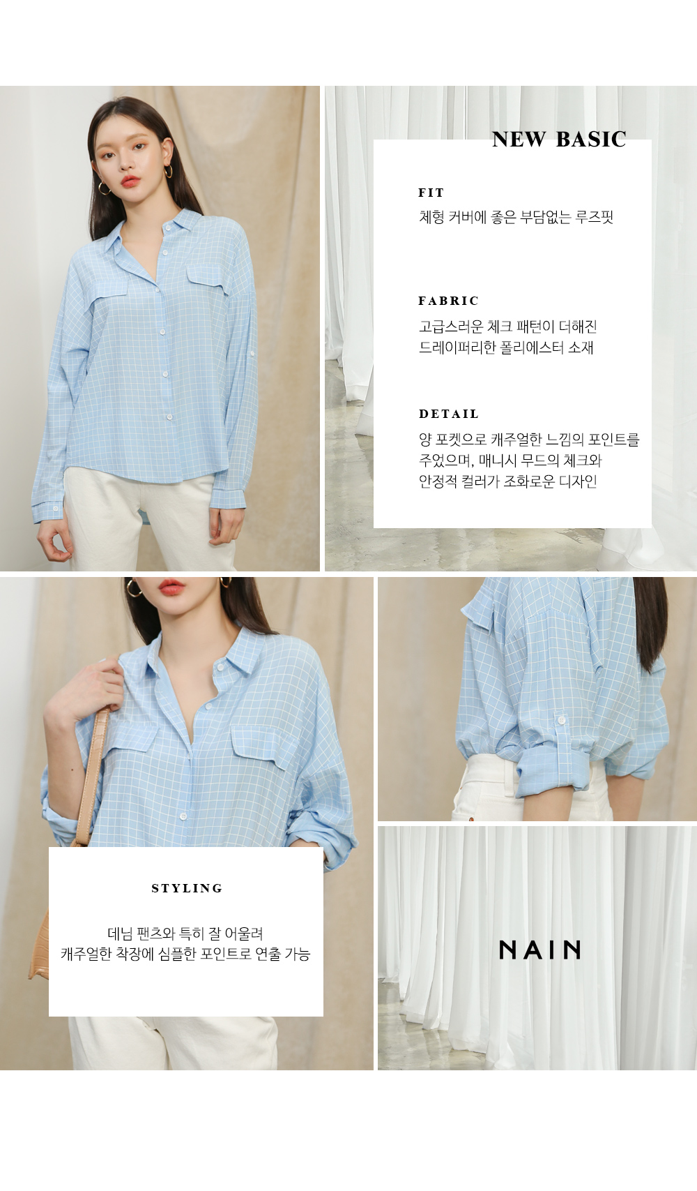 나인의 봄 신상품! 스퀘어 패턴 포켓 셔츠 블라우스를 소개합니다.