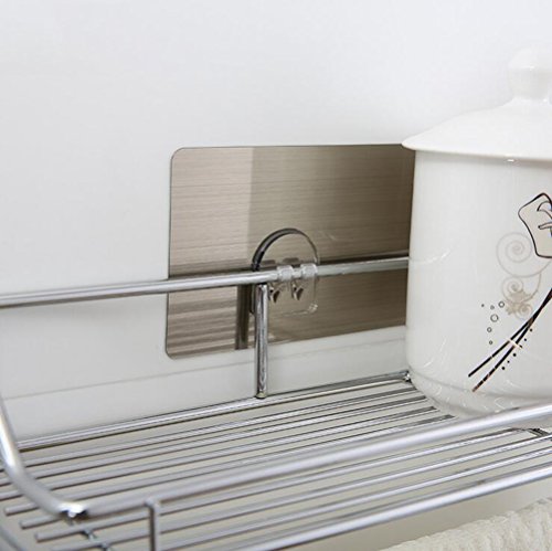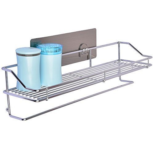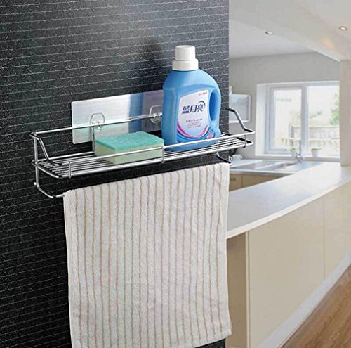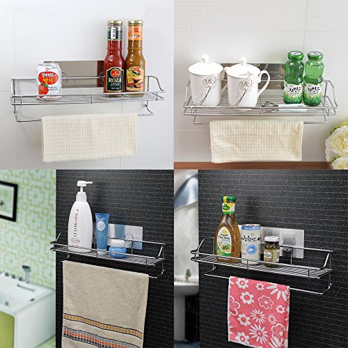 - Features of bathroom towel rack with shelf: No nail or drilling needed; Easy stick and non-trace; Harmless for the wall space, safe and stable; Kitchen&Bathroom, stick everywhere, washable, repeat stickers