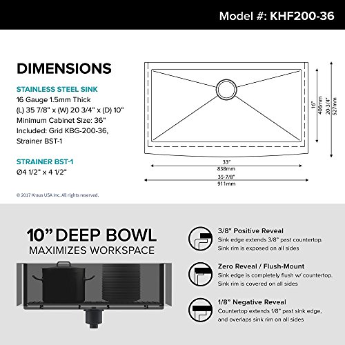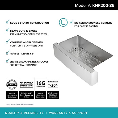 Kraus KHF200-36 36-inch Farmhouse Apron Single Bowl 16-gauge Stainless Steel Kitchen Sink