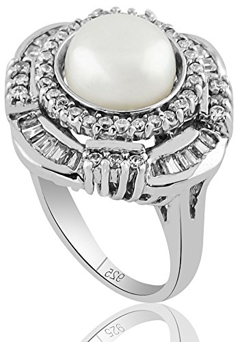 -. Title : Women's Sterling Silver .925 Fashion Pearl Fancy Cocktail Ring Featuring 59 Sparkling Various Cubic Zirconia (CZ) Stones, Platinum Plated
