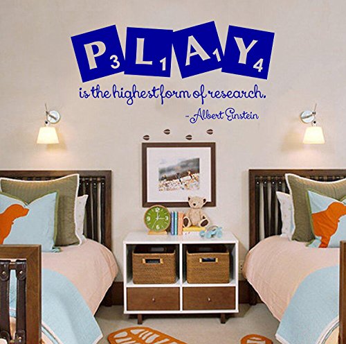 -. Title : Wall Decal Decor Playroom Decor Play is the Highest Form of Research - Albert Einstein Quote Playroom Decal Childrens Kids Wall Decal Sticker(navy blue, 17"h x34"w)
