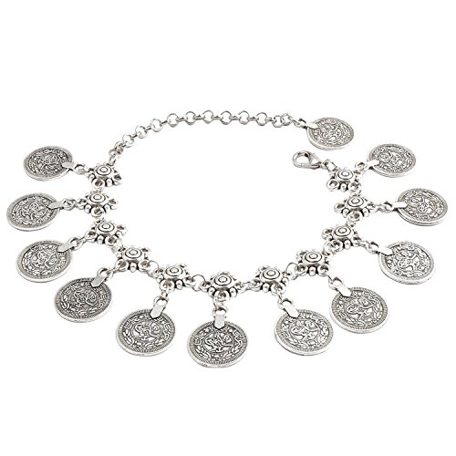 Akak Store 1 Pcs Vintage Style Antique Silver Anklet Coin Tassels Beach Ankle Chain Fashion Coin Leg Ankle Bracelet Anklets for Women To Beach
