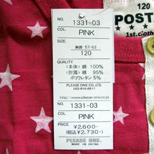 品 質 本体/綿100% 附属/綿95% ポリウレタン5%