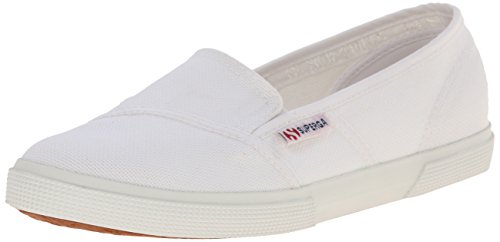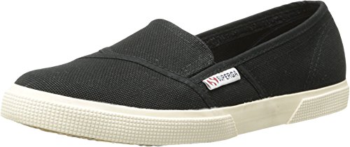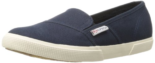 These canvas Superga loafers feature a logo tag at the top line. Rubber sidewall and crepe sole.