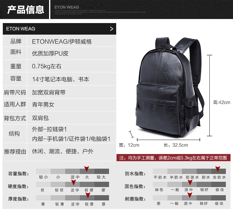 学院风男包双肩包男女日韩版潮中学生书包PU皮休闲背包电脑包