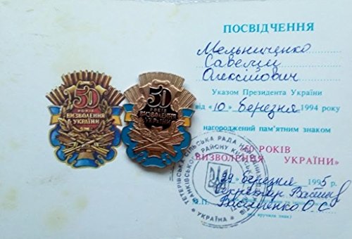 50 Years of Liberation of Ukraine WW2 Ukrainian Military Badge Melnichenko