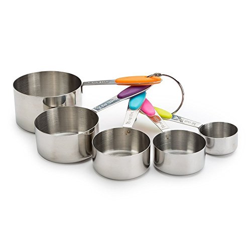 - BRIGHTLY COLORED MEASURING CUPS HANDLE,more beautiful than other measuring cups and brighten your kitchen.Soft rubber handles provide added user comfort and better grip Polished Finish, Rust Resistant, Engraved Size and Precise Measurement. Classic Kitchen Accessories.
