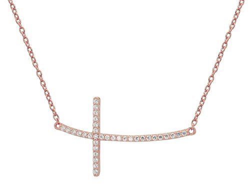 -. Title : Rose Gold Plated Sterling Silver Sideways Cubic Zirconia Cross Pendant Necklace 16"