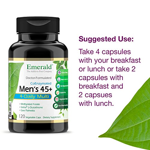 4-daily formula tailored to meet the specific health needs of men 45+, including antioxidants such as CoQ10, extra zinc, extra lycopene, saw palmetto, potassium, vitamins K1 & K2, coenzymes and coenzymated methyl folate. Contains coenzyme "activate" forms of B2 (R-5-P), B6 (P-5-P) & Methyl Folate (L-5 Methyltetrahydrofolate or 5-MTHF).Emerald Laboratories is formulated by Dr. Mark Stengler, Author of Prescription for Natural Cures. Dr. Stengler validates all Emerald Laboratories products with the help of blood panels drawn from patients in his La Jolla, CA medical practice.