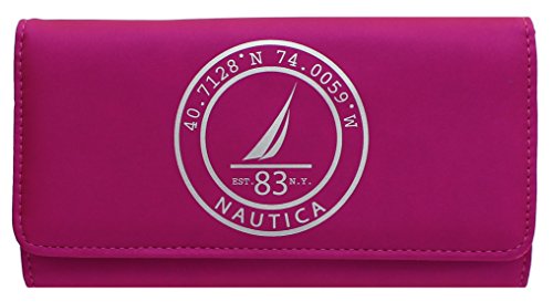 -. Binding : Apparel -. Brand : Nautica -. Department : womens -. Feature : • Rich looking Pearl Fell Faux Leather. Nautica Stamped Logo Design. / • 7.5" x 3.6" x 1.50". 1 Back Side zipper pocket / • RFID Blocking Protection Will keep your identity Safe from Thieves that can scan your wallet / • 3 open pockets. 10 c.card slots , 1 inner zipper pocket for coins. / • Removable Pull Out ID / with 2 C.card Slots -. ProductGroup : Apparel -. ProductTypeName : ACCESSORY -. Size : One Size -. Title : Nautica Tide Time Pull Out ID Clutch With RFID