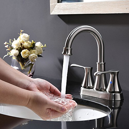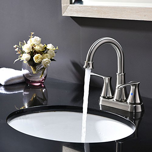 VESLA HOME Modern Two Handle Brushed Nickel Bathroom Faucet, Hot and Cold Water Bathroom Vanity Faucet
