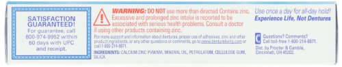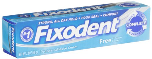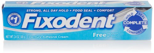 |  |  |  |  | | Fixodent Original Complete | Fixodent Food Seal Free | Fixodent Food Seal Plus Scope Flavor | Fixodent Neutral | | #1 Dentist recommended brand | ? | ? | ? | ? | | Strong, all day hold | ? | ? | ? | ? | | Powerful seal | ? | ? | ? | ? | | Great for full and partial plate denture wearers | ? | ? | ? | ? | | Precision Tip nozzle for precise application with less ooze | | ? | ? | | | Freshens breath with the flavor of Scope mouthwash | | | ? | | | No zinc added* *Contains up to 0.2% zinc (12% in other Fixodent cream adhesives) as a result of shared manufacturing lines | | | | ? | Frequently Asked Questions Why is Fixodent the right adhesive for me? Fixodent is the #1 dentist recommended denture adhesive brand. Our products deliver the hold, fit and comfort that you depend on to look and feel your best. And all of our products are backed by our 100% satisfaction guarantee, so you can feel confident in your Fixodent purchase. Can adhesives improve my denture fit? Yes! Clinical studies have shown that denture adhesives actually improve the performance of properly fitting dentures. Using denture adhesive might also help reduce irritation and sore spots caused by denture rub. How does Fixodent adhesive cream work? The natural moisture in your mouth changes Fixodent’s soft cream into an elastic-like membrane,helping to hold your dentures tight, so you can bite harder and eat more naturally. How long will my tube of Fixodent denture adhesive cream last? The longevity will vary depending on the size of the tube of Fixodent you are using. For example, a 2.4 oz tube of Fixodent should last at least 7 to 8 weeks, while a 1.4 oz tube should last at least 4 to 5 weeks. This product should not be used more than once a day. How long does the hold last? Fixodent denture adhesive is formulated to last all day. How do I remove adhesive residue from my mouth? To remove adhesive residue from your mouth, gums, tongue, and palate, brush the roof of your mouth and gums with a soft-bristled toothbrush and toothpaste such as Crest, and comfortably hot water. Should I add a denture cleanser to my denture care routine? Absolutely! It’s important to care for your dentures so they look and fit their best. Cleaning also helps prevent plaque build-up and helps eliminate denture odor. For best results, use a denture cleanser such as Fixodent Antibacterial Denture Cleanser plus Scope Ingredients every day. Satisfaction Guaranteed or Your Money Back If for any reason you are not satisfied with this product, please call 1-800-214-8871 within 60 days of purchase with receipt and UPC. 1 |