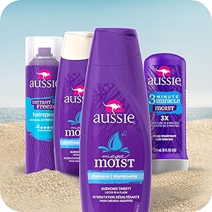 If thirsty hair is getting in the way of your 'do, Aussie Mega Moist Shampoo can put that moisturized feeling back into your style. You'll get Aussome, clean hair in a flash! And with the combination of floral and fruity scents, just working it through your hair is an invigorating experience. Pair it with Aussie Mega Moist Conditioner for more conditioning power. If you've got dry or damaged hair in need of nourishment, Aussie Mega Moist Shampoo will transform your tresses into silky soft locks with ease!