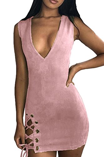 -. Feature : Designed in Faux Seude material,Sleeveless,above knee,Slim fit / Features:Criss-Cross Lacing Up Split Side,Low-cut,Plunging V neck,Slim-fit Bodycon Faux Suede Mini Party Evening Dress / Occasion:Daily Wear,Party,Club,Evening,Cocktail,Prom etc / Washing Method:Hand wash cold,Do not Bleach,Do not Iron / Wear with your favourite heels and hit the town! Size:S=US 4-6,M=US 8-10,L=US 12-14
