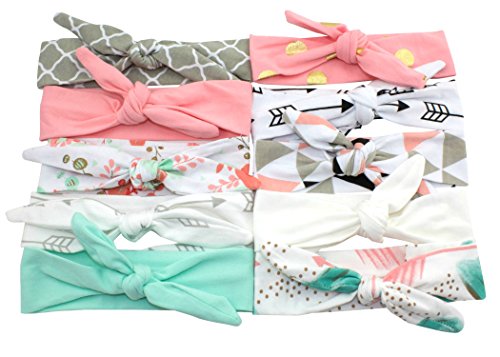 √ EACH SET CONTAINS 10 HEADBANDS IN VARIETY OF COLORS! Aqua, Peach, Ivory, Grays will complement many of your baby girls outfits.
