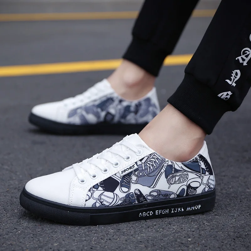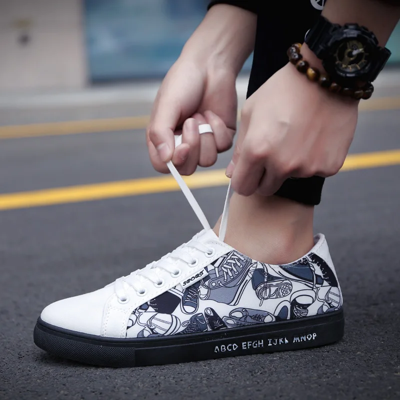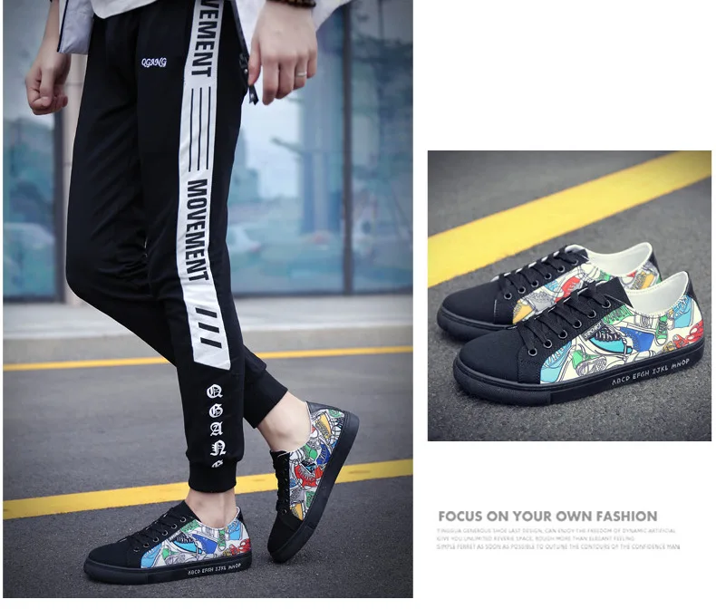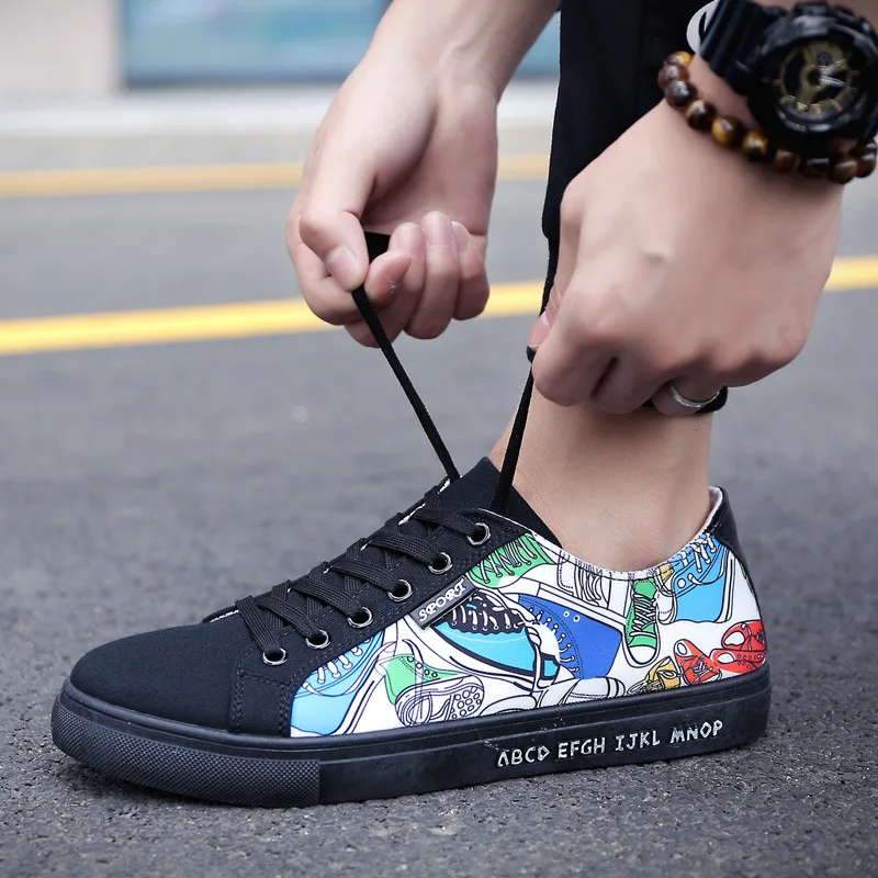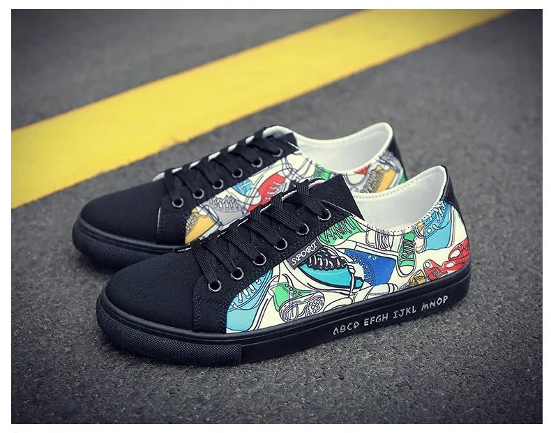 Canvas Shoes Men Feature:Fashion Graffiti Shoes