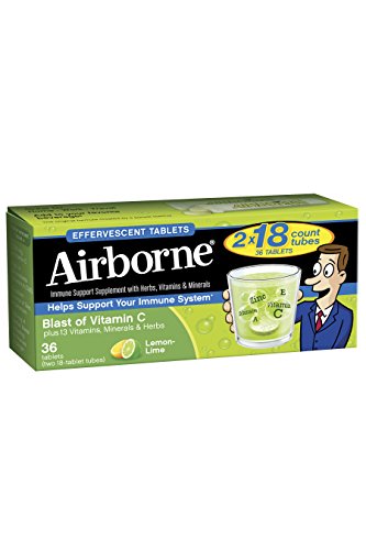 -. Binding : Kitchen -. Brand : Airborne -. EAN : 0647865100119 -. Feature : Airborne Immune Support Supplement With Herbs, Vitamins, and minerals Lemon Lime Flavor 36 Tablets Per Order / Helps support your immune system. / Number 1 best seller in the USA -. IsAdultProduct : 0 -. Label : Airborne -. LegalDisclaimer : The statements in this page have not been evaluated by the Food and Drug Administration. This product is not intended to diagnose, treat, cure or prevent any disease. -. Manufacturer : Airborne -. MPN : 6660 -. NumberOfItems : 1 -. PackageQuantity : 1 -. PartNumber : 6660 -. ProductGroup : Health and Beauty -. ProductTypeName : HOME -. Publisher : Airborne -. Studio : Airborne -. Title : Airborne- Effervescent Adult Formula, 36Tablets Lemon-Lime (Bonus Size) -. UPC : 885280777183