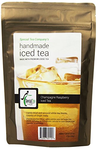 -. Binding : Grocery -. Brand : Special Tea -. EAN : 0852667691158 -. Feature : Loose Leaf Tea / akes approximately 12 cups of tea / Each packet is hand packed in the USA. / Premium tea leaves have all their essential oils intact, so the flavor, quality and health benefits are maintained. -. Label : Special Tea -. Manufacturer : Special Tea -. NumberOfItems : 1 -. PackageQuantity : 1 -. ProductGroup : Grocery -. ProductTypeName : GROCERY -. PublicationDate : 2014-06-29 -. Publisher : Special Tea -. ReleaseDate : 2014-06-29 -. Size : 1 Ounce -. Studio : Special Tea -. Title : Special Tea White Iced Tea, Champagne Raspberry, 1 Ounce -. UPC : 852667691158