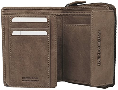 Brown Bear Damen Geldborse Leder vintage Reissverschluss Mandy ca