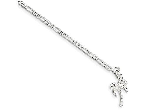-. Title : Sterling Silver 10inch Solid Polished Palm Tree Anklet