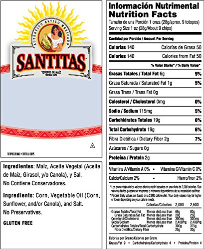 -. Feature : 11.0 oz. bag of SANTITAS Tortilla  Chips / Tasty tortilla chips for your next party snack / Pair with your favorite FRITO LAY dip and salsa / Gluten free product / Bring these chips to your next tailgate, barbecue, or family get-together
