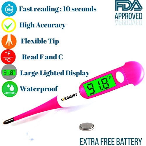 - FDA CERTIFIED & FULL-FEATURED: Your Fever Thermometer carries 100% FDA approval for safety & accuracy. Waterproof & mercury-free, it has a beeper alert, fever alarm, auto shutoff & more.