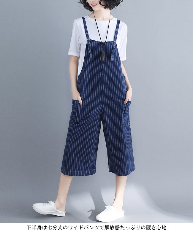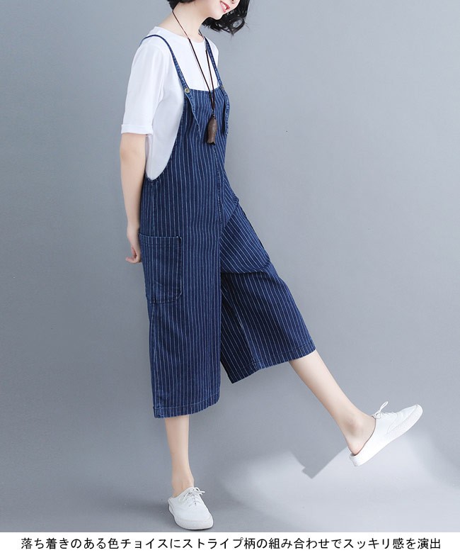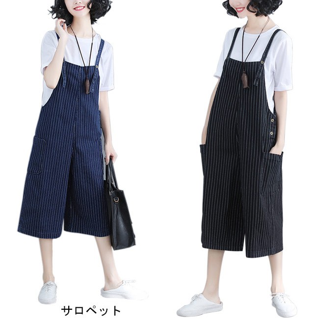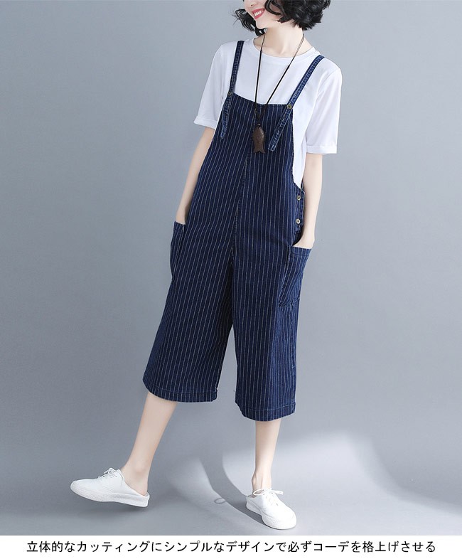 サロペット デニム レディース サロペットパンツ 七分丈 ワイドパンツ ストライプ柄 ゆったり デニムサロペット ボトムス 女性用 夏物 春秋物レディース用のデニムサロペットが登場下半身は七分丈のワイドパンツで解放感たっぷりの履き心地落ち着きのある色チョイスにストライプ柄の組み合わせでスッキリ感を演出立体的なカッティングにシンプルなデザインで必ずコーデを格上げさせる可愛らしいシルエットは若い女の子ならではの甘さを引き立てるトップスとの組み合わせも十分に楽しめる一枚カラー:ネイビー ブラック素材 綿混紡サイズ(cm) S M L XLS 総丈(肩ベルト含まず)108 ヒップ116 ワタリ74 ウエスト96M 総丈(肩ベルト含まず)109 ヒップ120 ワタリ76 ウエスト100L 総丈(肩ベルト含まず)110 ヒップ124 ワタリ78 ウエスト104XL 総丈(肩ベルト含まず)111 ヒップ128 ワタリ80 ウエスト108ご注意:※サイズは平置きサイズです。素人採寸ですので、若干の誤差がございます、ご了承ください。
