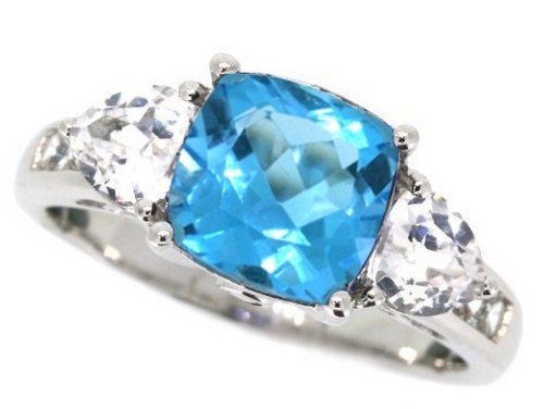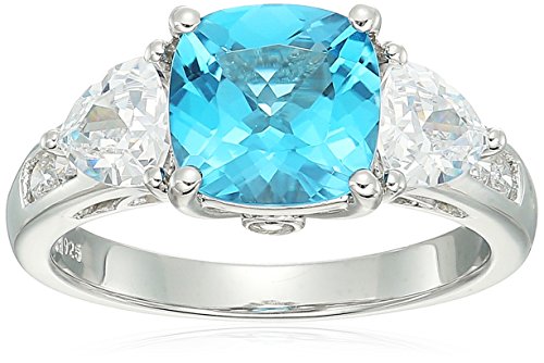 -. Title : Sterling Silver Swiss Blue Topaz and Cubic Zirconia Ring