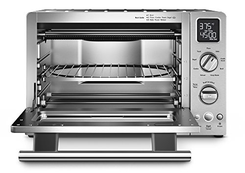 - Feature : Even-heat technology provides consistent heat throughout baking cycle for delicious results. / Use your countertop oven to bake pizza, broil a side dish, keep an already cooked dish warm or toast bread. / 9 pre-programmed functions such as the Asado Roast Function to precisely adjust from high sear to optimal cooking temperature for superior roasting. / 120-minute timer can be set to remind you when a dish is finished and offers plenty of time for the requirements of most recipes / Offers enough room to cook 2-12" pizzas, or cornish hens. The oven cavity also features a non-stick coating for easy cleaning. / Includes 12" non-stick multipurpose pan, 12" broiling rack, cooling rack, non-stick drip tray.