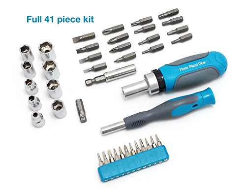 - THREE SETS IN ONE - 41 piece screwdrivers set with the most common regular & precision bits and sockets for general house repairs, assembly, electronics and projects – From furniture and appliances to computers and eyeglasses.
