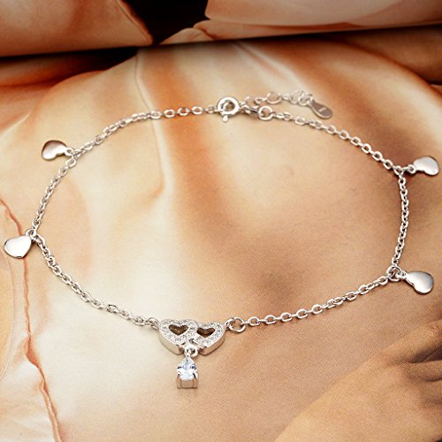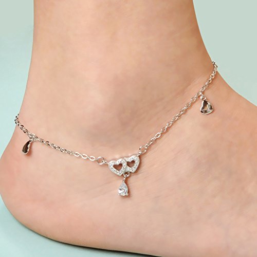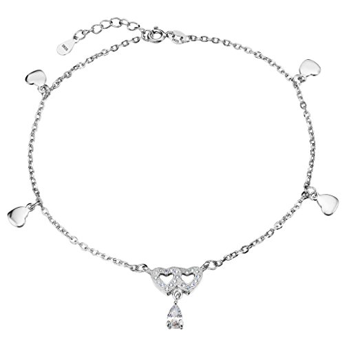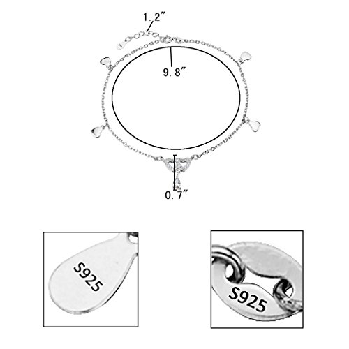 -. Title : EleQueen 925 Sterling Silver Dangling Hearts Teardrop Adjustable Ankle Charm Bracelet Beach Foot Chain, 9.8"+1.2" Extender