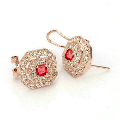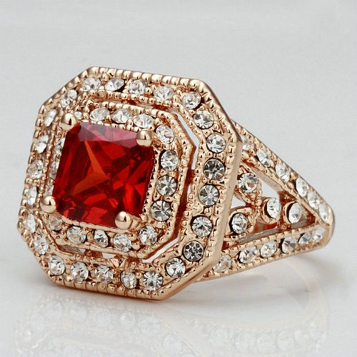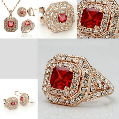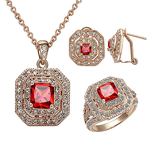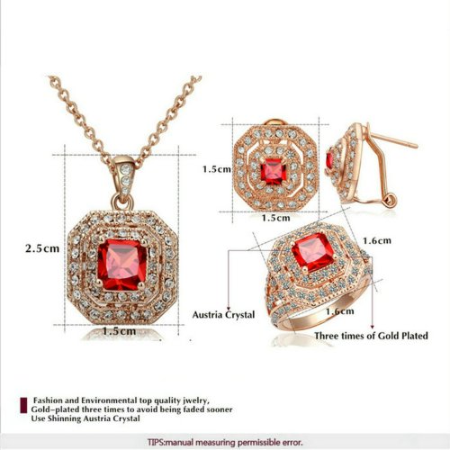 -. Title : Yoursfs Wine Red Jewelry Set For Women 18k Rose Gold Plated Ruby Necklace Rings Earrings Sets