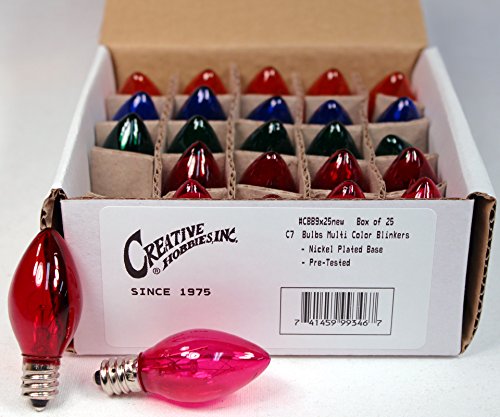 Creative Hobbies® Box of 25 Colored Light Bulbs, Random Blinking, 7 Watt, C7 Candelabra Base -Great for Night Lights and Christmas Strings