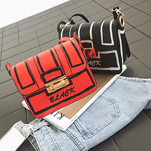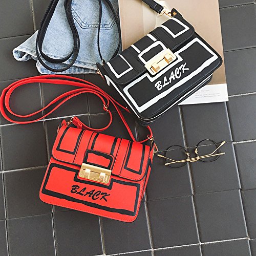 Product Description Style: Ladies Shoulder Bags Fabric Texture: PU Bags shape: horizontal square Bags trendy style: Small square bag Open cover way: Lock Popular elements: printing Package Internal Structure: zipper pocket Roots: single root Bags size: small Pattern: text Color: red, black 0
