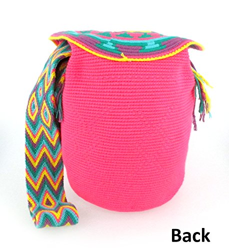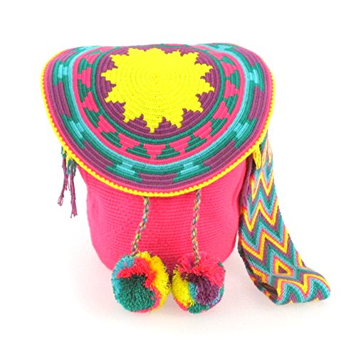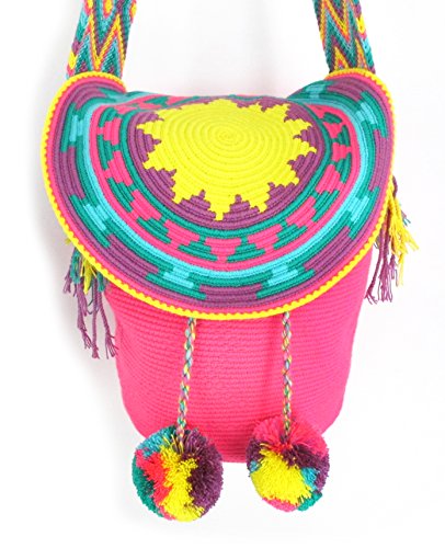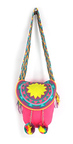 Hand Woven Crochet"Hot Pink Pastel" Shoulder Bucket Bag/w Pom Pom