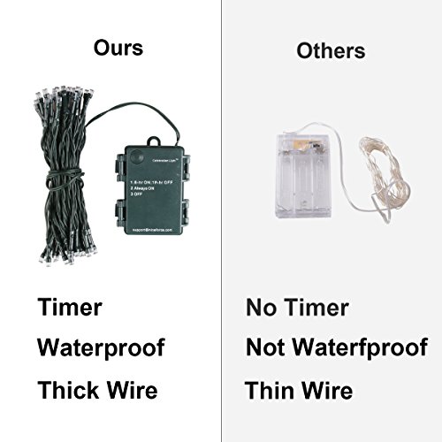 【 BATTERY OPERATED LED STRING LIGHTS WITH TIMER 】 This lighted wreath comes with a 17' battery-operated LED string light that with 50 low voltage warm white bulbs and built-in 6 hours on/18 hours off timer.(3x AA batteries are required)