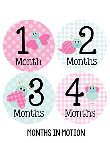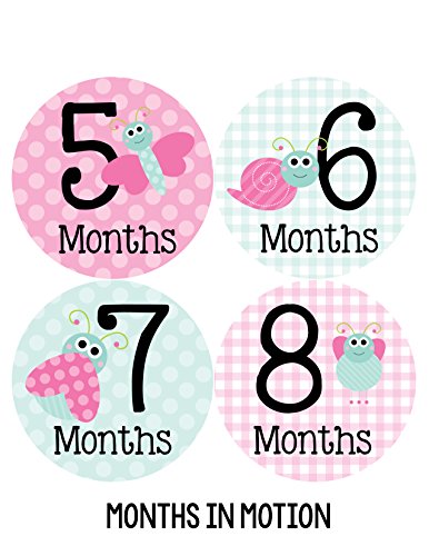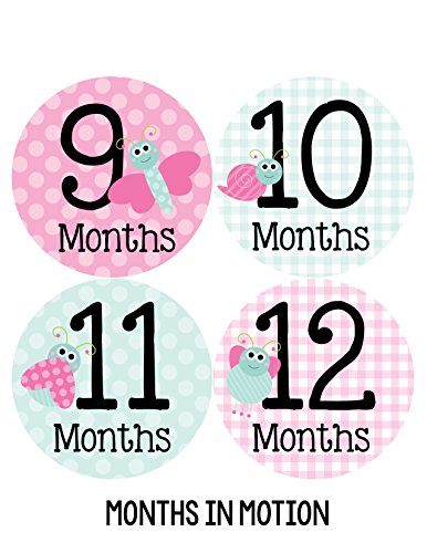 Months in Motion 317 Monthly Baby Girl Stickers Pink Cute Bugs Months 1-12