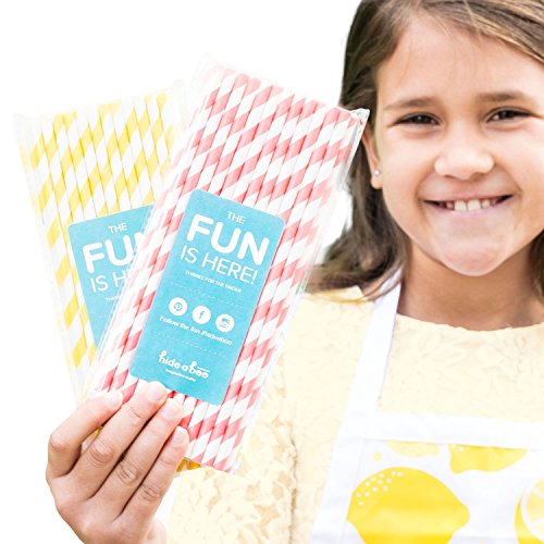 EASY BUNDLE- Each bundle includes one Lil' Biz Cover, one childrens lemonade apron, 50 paper straws of assorted colors.