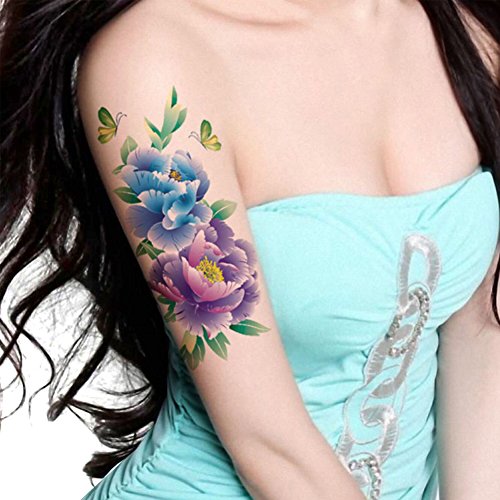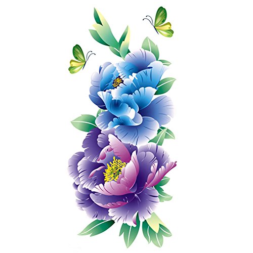 TAFLY Butterfly Large Peony Flower Body Art Temporary Tattoo Transfer Sticker 5 Sheets