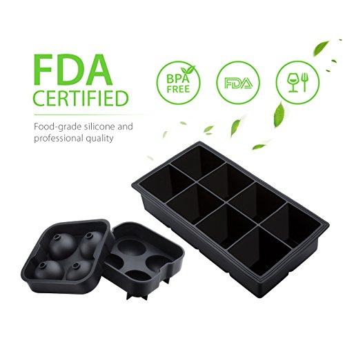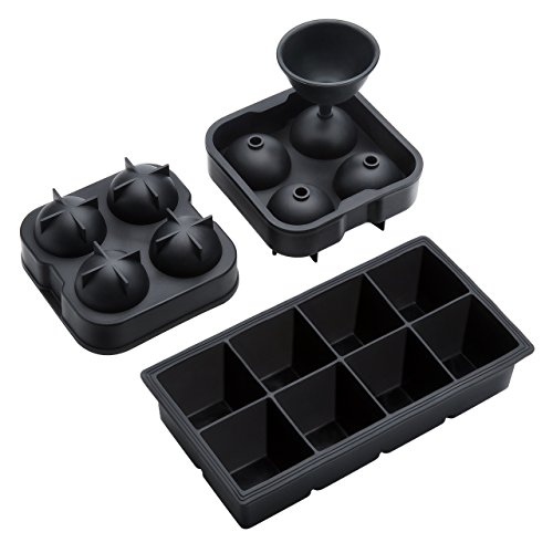 Homasy Ice Ball Maker Mold / Ice Cube Tray Set, Flexible Food-Grade Silicone Ice Tray Keep Your Drink Chilled for Bar, Party, Beach (2 X Ice Ball, 1 X Cube)
