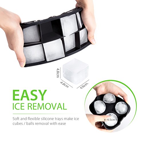 - EASY ICE REMOVAL: Featuring with soft and flexible silicone material, our ice makertrays and molds ensure easier ice removal, and you just need to press theflexible silicone to take out the ice with ease