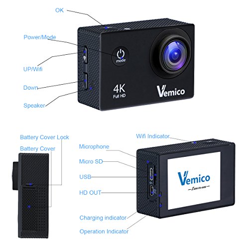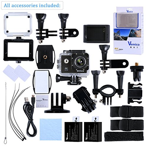 Action Camera 4K, Vemico Sports Camera Waterproof WIFI 1080P Video Camcorder HD Helmet Camera with 2 Rechargeable Batteries