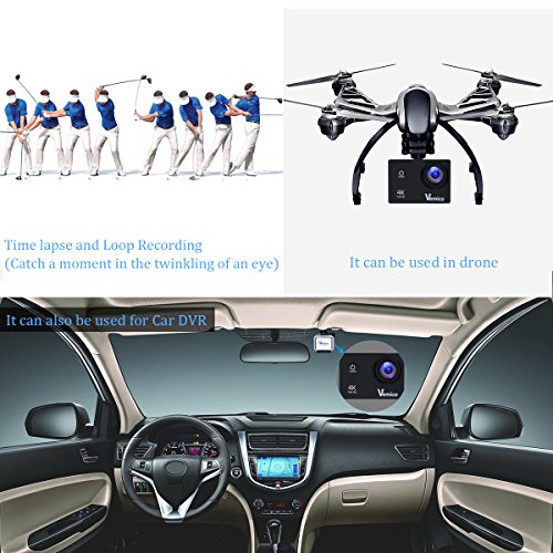 【4K30FPS Video Recording】Vemico Full HD 4K sports action camera is a flagship model, featuring a wealth of video options include 4K at 30FPS, 2.7K at 30FPS and an impressive 60FPS at 1080P for slow motion capture. Including time-lapse and loop recording, this makes it a great choice for professional videographers as well as home users who want flexibility over the video quality and resolution settings.