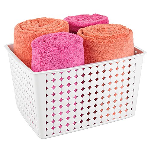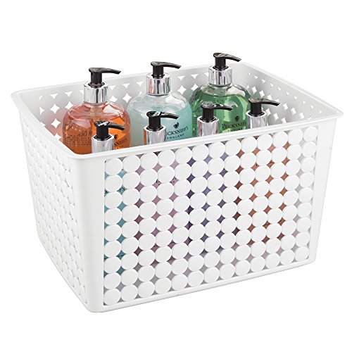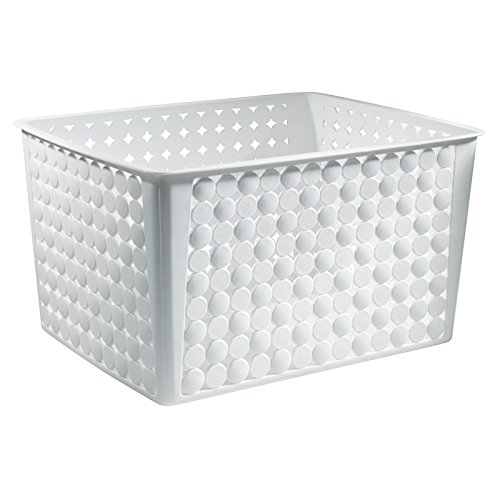 mDesign Household Storage Basket for Office, Garage, Bathroom and more - 14" x 11" x 8.25", White