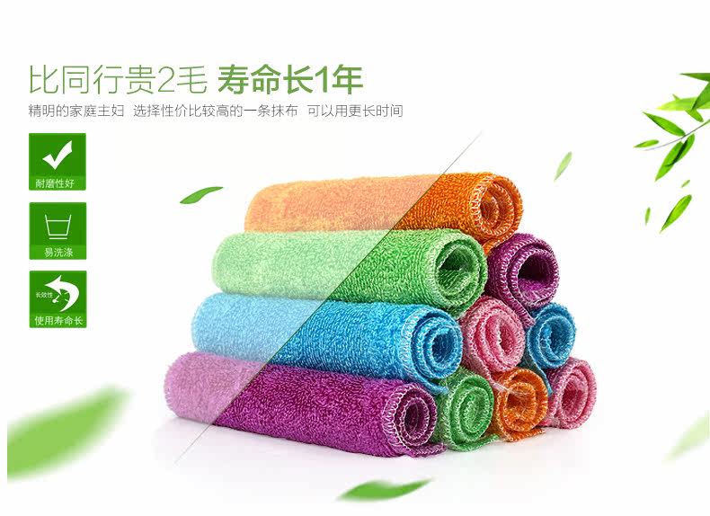 厨房抹布竹纤维洗碗巾 洗碗布 加厚抹布不沾油5条装