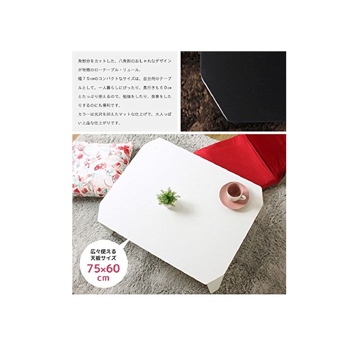각부분을 컷 했다, 멋을 낸 팔각 형태가 특징의 로우 테이블 류《―루》.컴팩트한폭75cm사이즈에,(길이)깊이도 60cm과 충분히 쓸만합니다.컬러는 광택을 억제한 매트인 마무리.※테이블의 인연으로 상처가 있었다고 하는 고객의 목소리를 받는 것,2017년 7월1일에 상품의 포장재 완충재를 강화 했습니다.