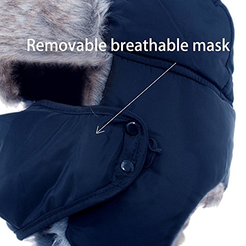 [HUMANIZATION DESIGN] Adjustable Chin Strap makes sure no cold air get into the hat. Windproof Mask and ear flaps design keep face & ears warm. Removable mask is easy to wash.
