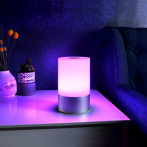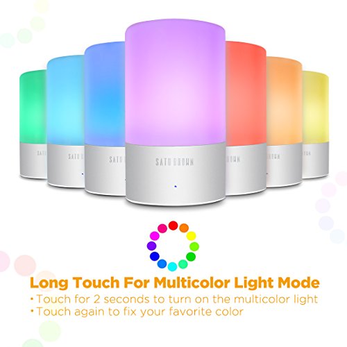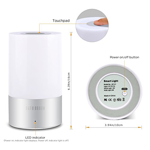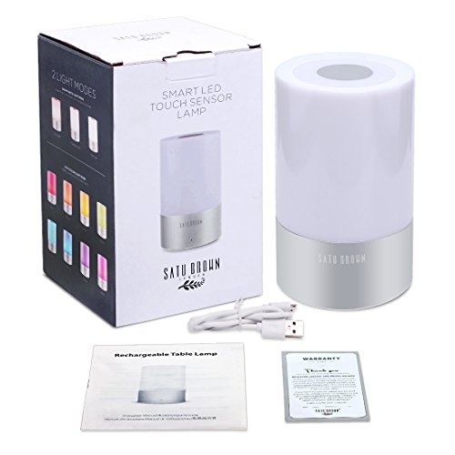 Touch Sensor Bedside Lamp, Satu Brown Smart LED Table Lamp Night Light Desk Lamps Portable Atmosphere Lighting, Dimmable Warm White Lights and Color Changing RGB