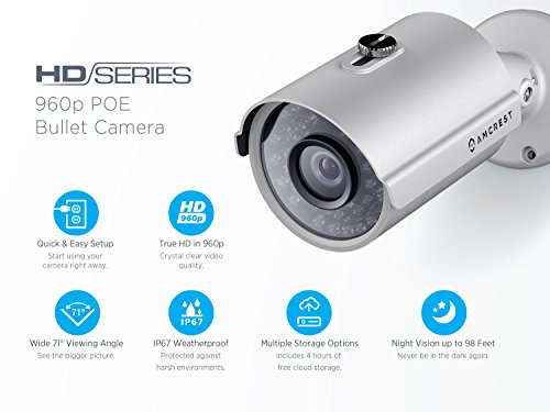 -. Feature : Amazing High Definition 1.3 Megapixel 960P Video at 30fps. Record and Playback via Amcrest or ONVIF NVR, FTP Upload, and Blue Iris. Amcrest Cloud Video Recording Service Available. / Quick Power Over Ethernet Setup via iPhone or Android Smartphone using the Amcrest View App (Included). Seamlessly Stream Video Directly to Your Smartphone, Tablet, Apple Mac or Windows PC. / Great Field of View with Wide 71 degree Viewing Angle, Intelligent Digital Zoom, and IR LED Night Vision Up to 98 feet. / Stay in Touch with Intelligent Motion Alerts, Email Alerts/Snapshots as well as Mobile and Web Apps (Safari, Firefox, IE Supported - Chrome Supported on Amcrest Cloud). / All cameras CE and FCC certified with UL compliant. Full 1-Year US Warranty and Lifetime Support Provided Directly from Amcrest.